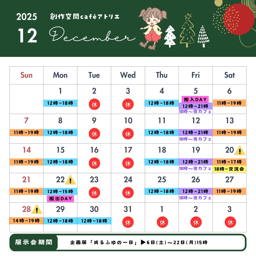 休業:12/2、3、9、10、16、17、23、24、31